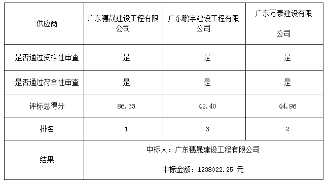 1:中標供應(yīng)商名稱廣東穗晟建設(shè)工程有限公司 法人代表 李輝龍 地址 茂名市電白區(qū)海濱新區(qū)第一小區(qū)單體小住宅D區(qū)D02號401房